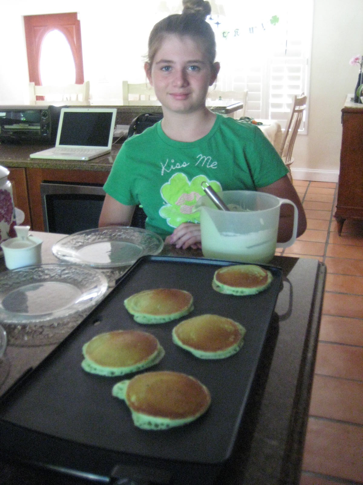First up Homemade Pancakes with Green food coloring.